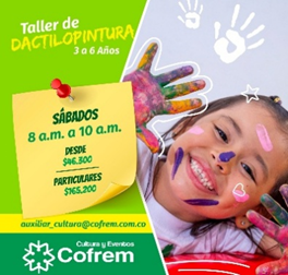 También está disponible la inscripción en el Taller de Dactilopintura, que se ofrece los sábados en el horario de 8 a 10 de la mañana para niños con edades comprendidas de 3 a 6 años.