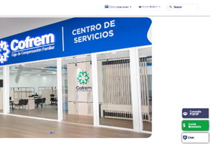 Ingresando en www.cofrem.com.co aparece el Botón Verde en la portada o primer pantallazo, al que se accede de forma práctica, digitando únicamente el tipo de documento y el número de la cédula del titular de la cuota monetaria.