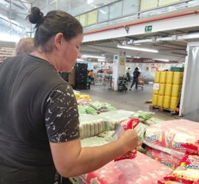 Familias seleccionan los productos de los paquetes nutricionales que entrega Cofrem